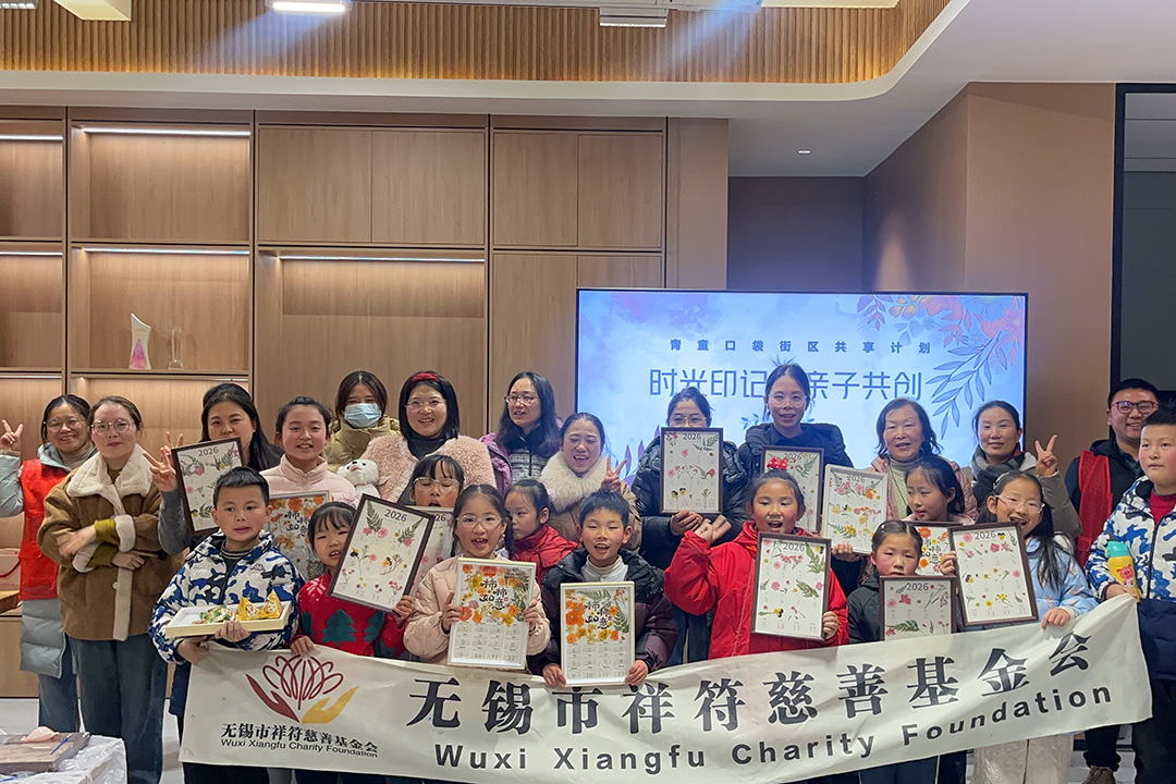 1月9日,无锡市祥符慈善基金会携手滨湖区邻聚社工在善行益站开展以“花开时节·时光有礼”为主题的干花日历亲子手工活动。本次活动吸引了13组亲子家庭积极参与,在温馨互动与创意手作中,共同度过了充满艺术气息和亲子互动的美好时光。