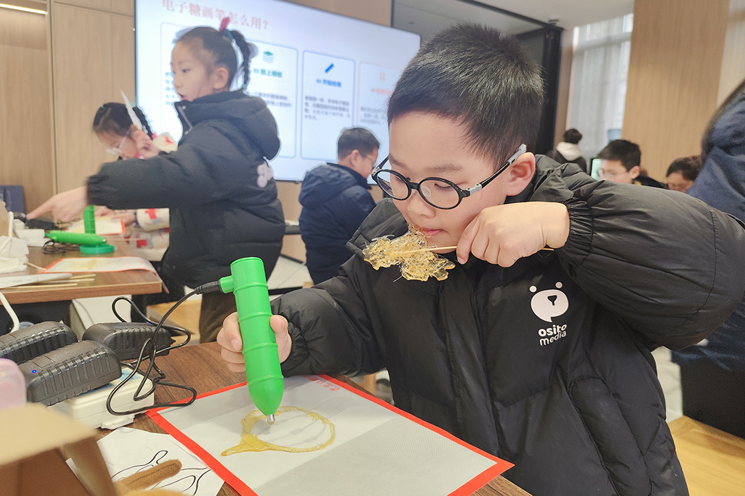 当糖香邂逅童心 非遗糖画点亮创意童年。2月5日,无锡市祥符慈善基金会携手梁溪区范贝青少年成长中心在善行益站开展非遗糖画制作活动,将这项承载着数百年历史的民间艺术带到了孩子们面前。勺糖浆,一根竹签,在孩子们专注的目光中缓缓流淌成生动的图案——蝴蝶振翅欲飞,金龙昂首腾跃。